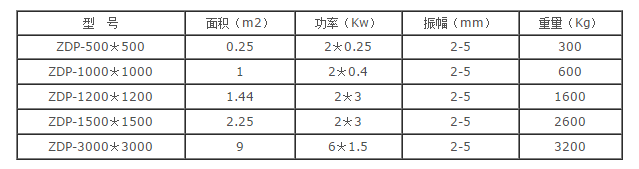 注:ZDP系列振动平台(振实台)为非标产品,可按客户要求设计定制振动平台。根据最大激振力、振动幅度、振动频率、振动型式及振动平台幅面大小等要求来选用合适的振动电机。