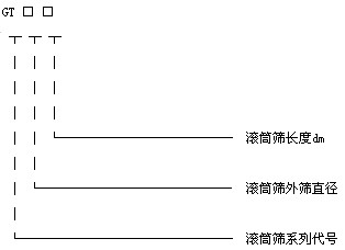GT系列矿用滚筒筛型号说明: