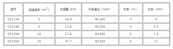 GT系列滚筒筛技术参数表:
