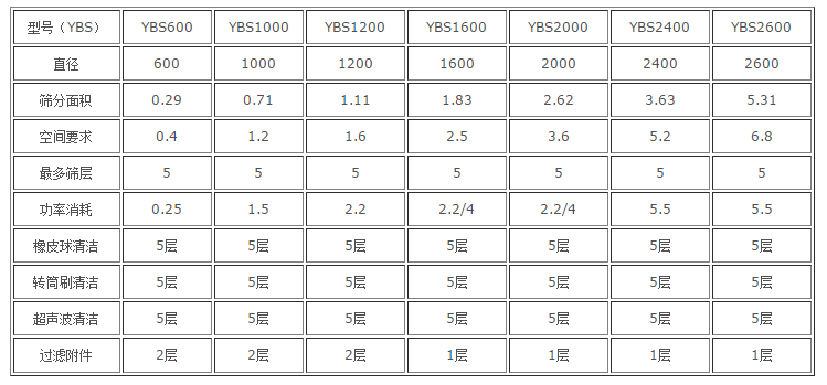 摇摆筛技术参数: