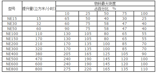 NE系列板链斗式提升机技术参数表: