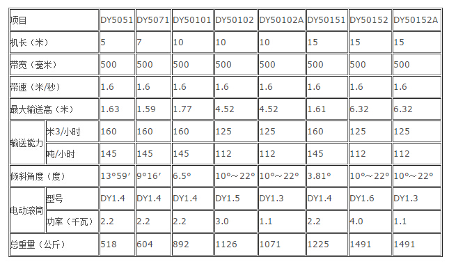 DY型可移动式皮带输送机分为可升降型及不可升降型两大类,输送带的运行靠电动滚筒驱动,整机的升降与运行均为非机动。 DY型可移动式皮带输送机适用于散状物料或成件物品的短途运输和装卸工作。采用钢管结构,轻巧美观,机动性好。转动装置为电动滚筒,并配有充气轮胎和钢轮两种行走轮。机长10米以上倾角可调。